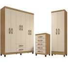 Kit Guarda Roupa Casal Porto Belo 6 Portas 2 Gavetas, Cômoda 5 Gavetas Porto Belo e Multiuso Cairo Carvalho Off White Clique Chique
