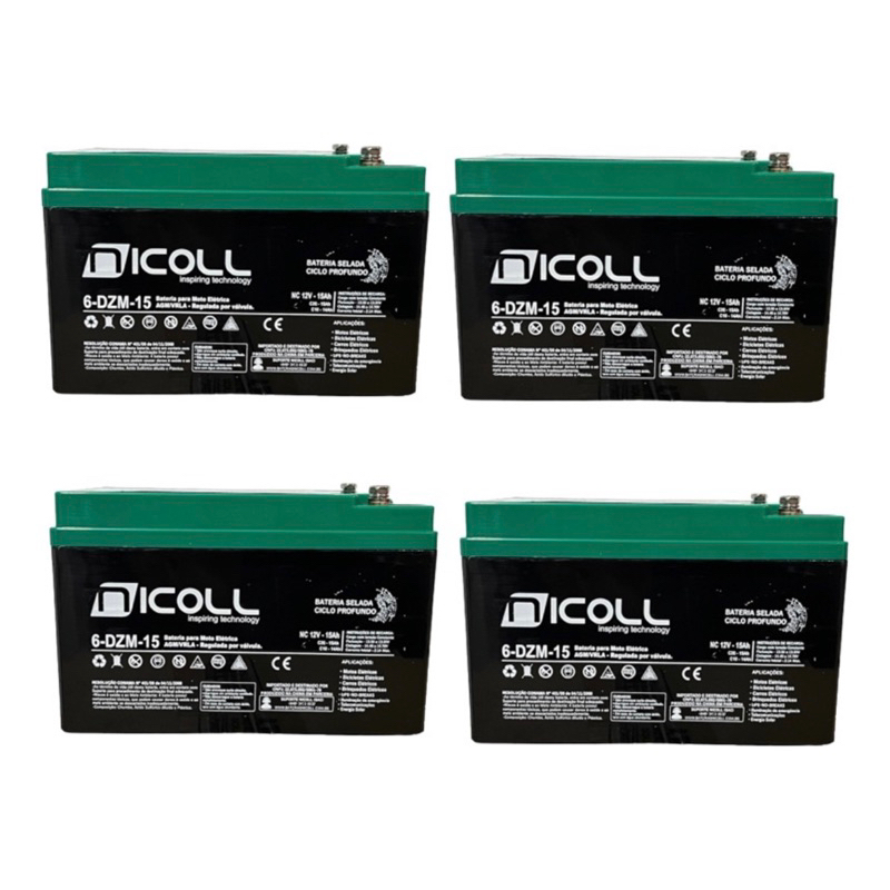 KIT 4 BATERIAS NICOLL 12V 15AH CICLO PROFUNDO BICICLETA BIKE ELETRICA ORIGINAL