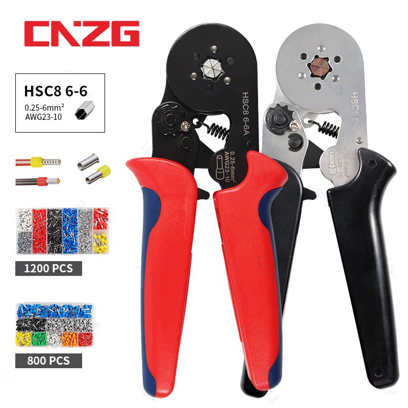 WOZOBUY Conjunto De Ferramentas De Crimpagem HSC8 6-6A/4A Alicate Para Terminal De Tubo 1200Pcs/Box De Corte De Fio Preto Kit