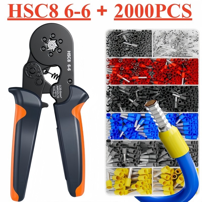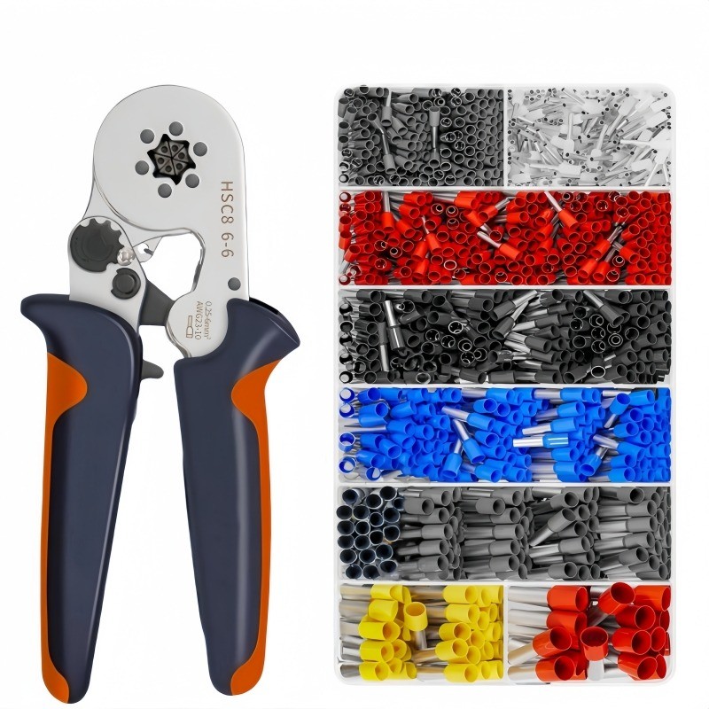 Kit Alicate Crimpar Prensa Com 2000Pçs Ilhos Tubular Terminal Autoajustável Crimper Hexagonal Ferramenta De 0,5 Até 6mm²