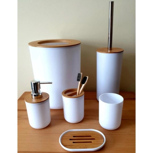 Kit Banheiro Conjunto 6 / 4 / 2 Peças Completo Lixeira Tampa Bambu Lavabo Escova Sanitária