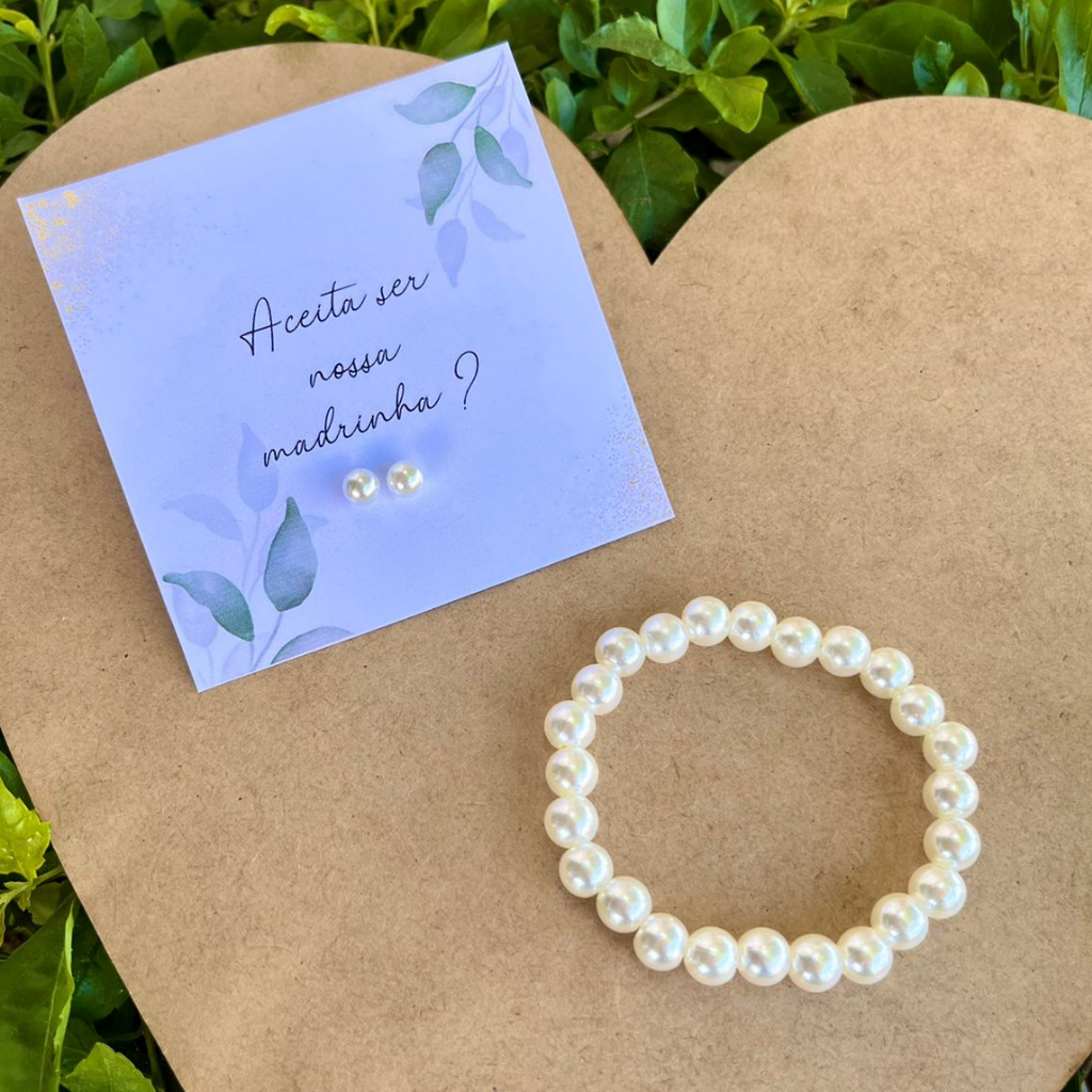 10/15/20 Kit madrinha de casamento azul serenity pulseira e brinco de pérolas lembrancinha convite