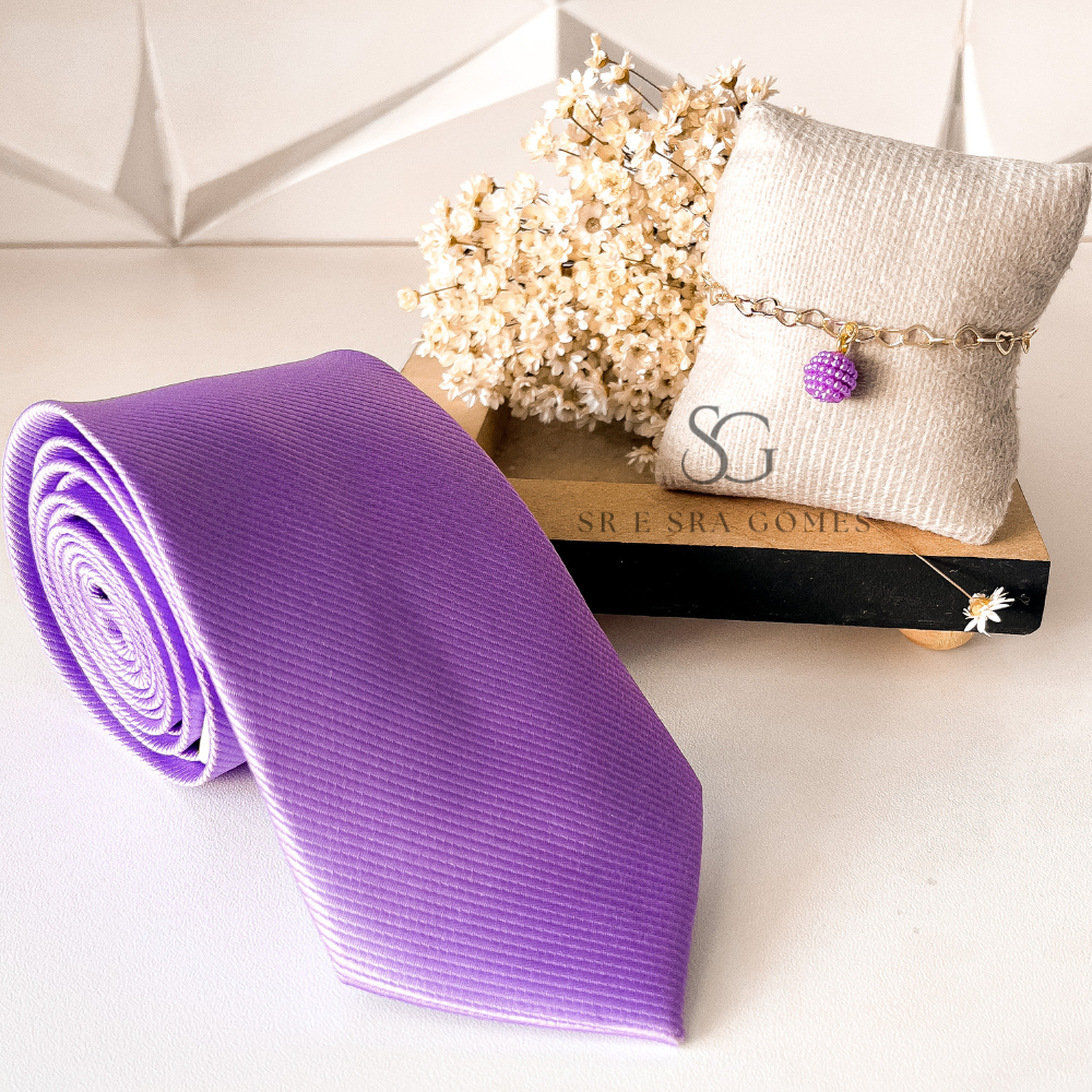 KIT GRAVATA E PULSEIRA PARA PADRINHOS CASAMENTO LILÁS LAVANDA GRAVATA TECIDO TRABALHADO E PULSEIRA