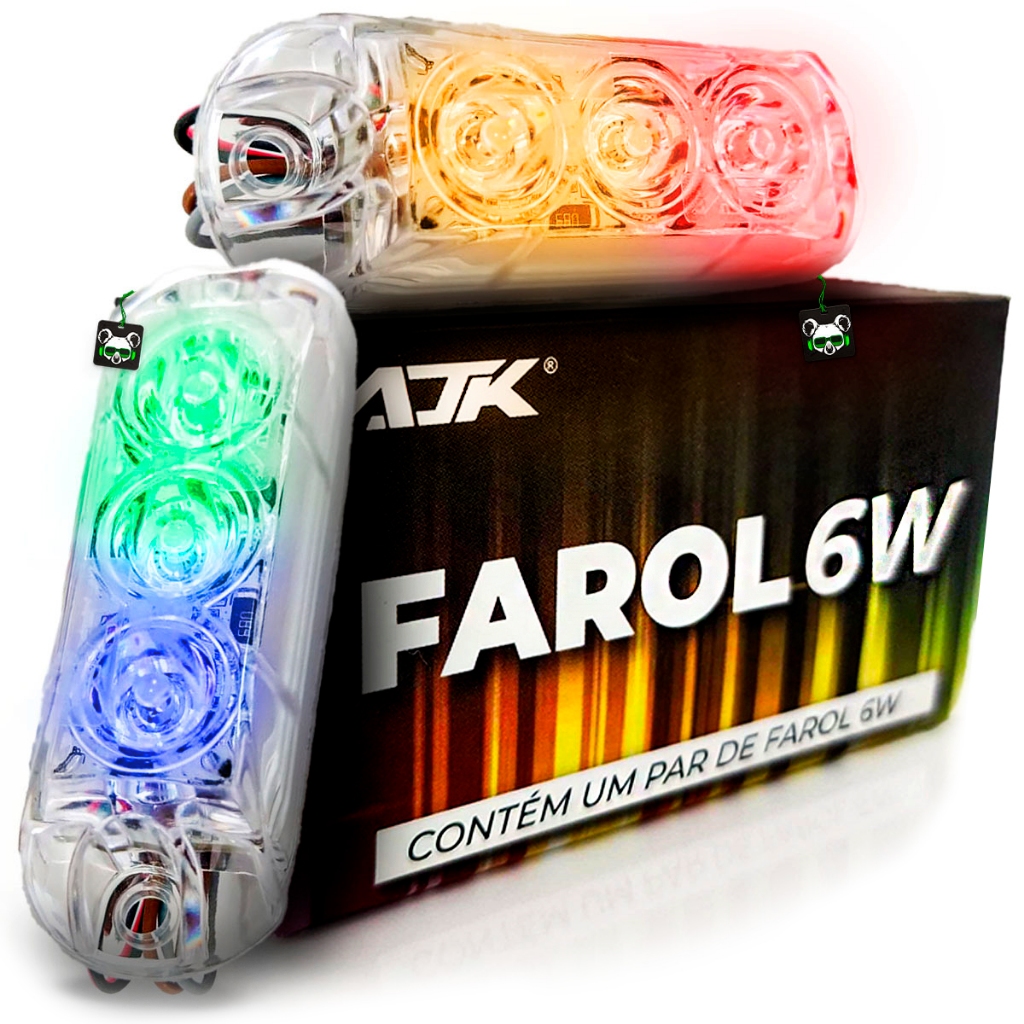 Kit Par Farol LED Strobo Automotivo RGB 6W AJK Som Auto Caixa Bob Luz 8 cores