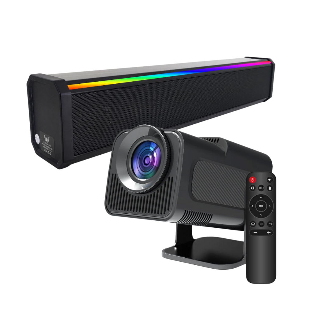 Kit Projetor 4k HY320 Cinema com Caixa de Som Bluetooth Soundbar Portátil Smart Wif