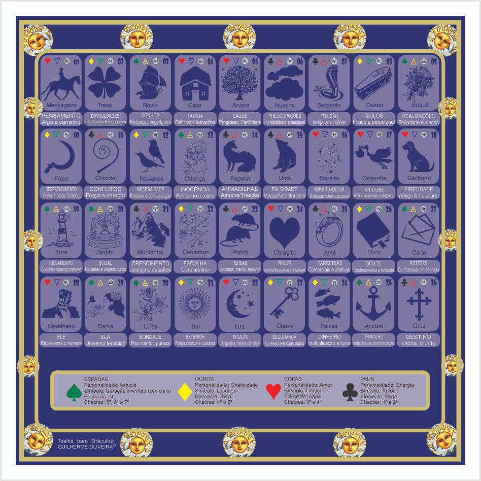 Kit Toalha, 2 Saquinhos - Mesa Real 4x9 Cartas Abertas para Leitura de Baralho Cigano