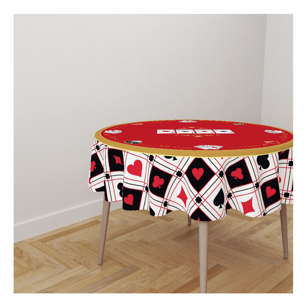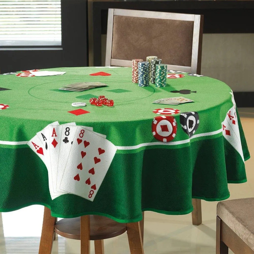 Toalha De Mesa Redonda Estampa Poker Baralho Tecido Oxford 140cm x 140cm