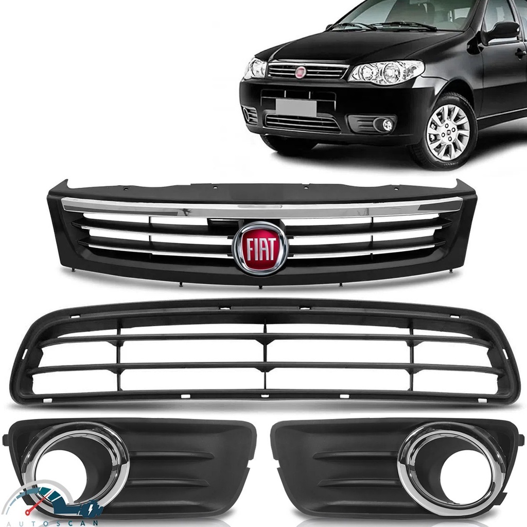 Kit Grades Molduras Central Farol De Milha Parachoque Dianteiro Palio Siena Economy Friso Cromado