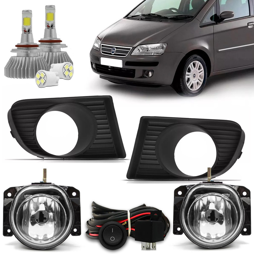 Kit Farol De Milha Neblina Auxiliar Fiat Idea 2006 2007 2008 2009 2010 + Led