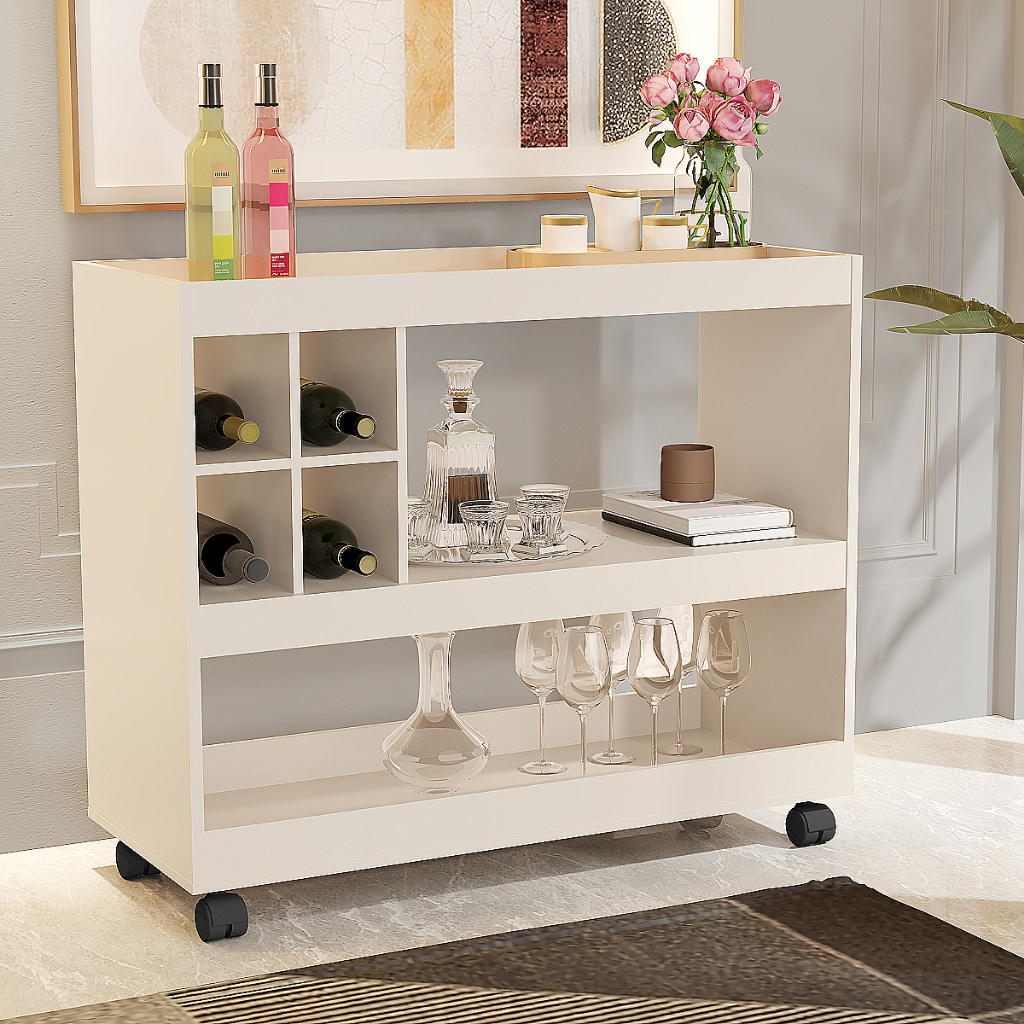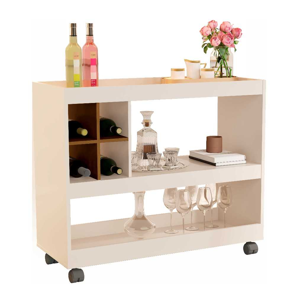 Aparador Bar Buffet Para Sala Com Adega E Rodízios 4050 - Cor Pérola