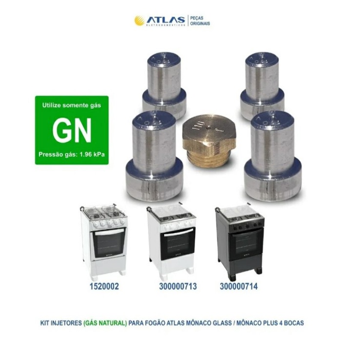 Kit de Injetores GN (GÁS NATURAL) para fogões Atlas Mônaco Glass e Mônaco Plus 4 bocas 100% Originais de Fábrica