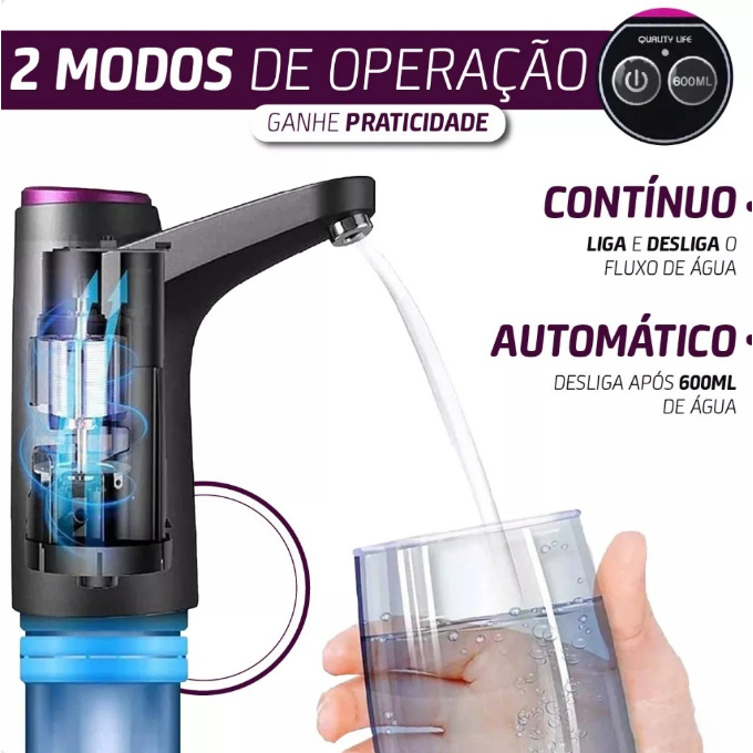 Bebedouro Bomba Elétrica De Galão Universal Com Carregamento USB P Galão Água Garrafão Recarregável
