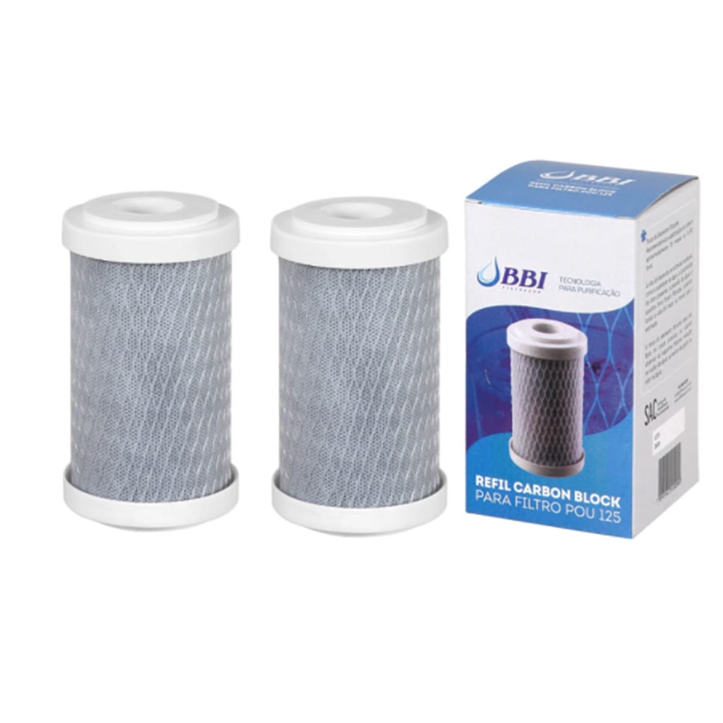 Kit 2 Refil Elemento Filtrante Filtro De Água Pou-125 Bbi Carvão Ativado