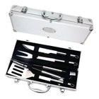 Kit Churrasco 4 Peças Garfo Faca Pegador Espátula Inox Com Maleta
