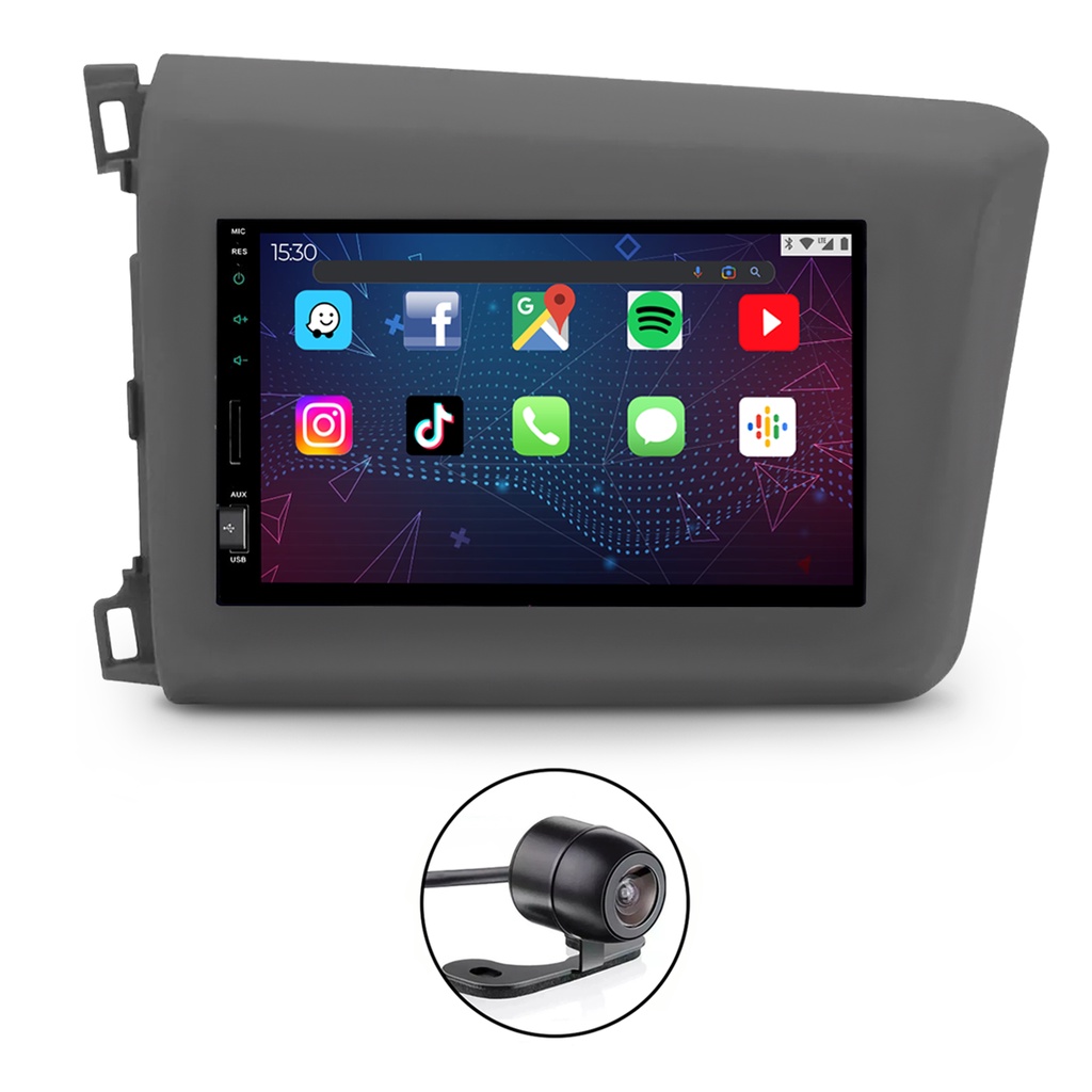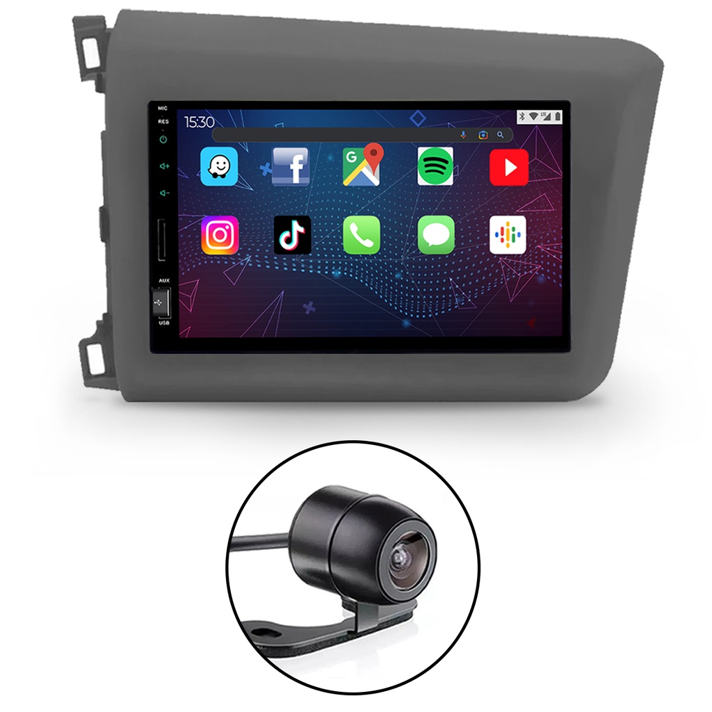 Kit Central Multimídia Tela 7 Polegadas + Câmera de Ré + Moldura Painel 2 Din Honda Civic 2012 a 2014 Grafite