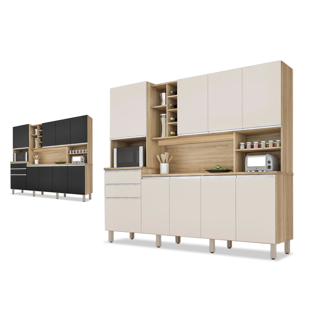 Kit Armário de Cozinha 8 Portas 2 Gavetas Com Prateleiras e Adega Porto Várias Cores