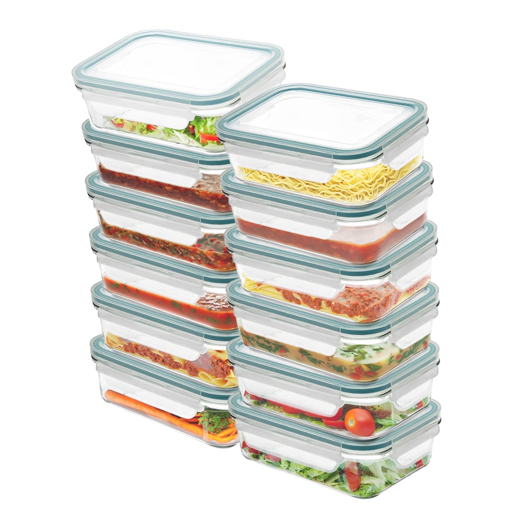 Kit Com 12 Potes Herméticos de Vidro Marmitas Fitness Vasilhas Com Tampa Microondas Freezer 370ml