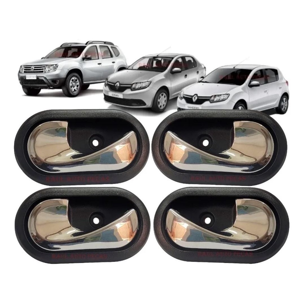 Jogo com 04 Maçanetas Internas Lado Esquerdo e Lado Direito Cromada Logan Sandero Duster Oroch