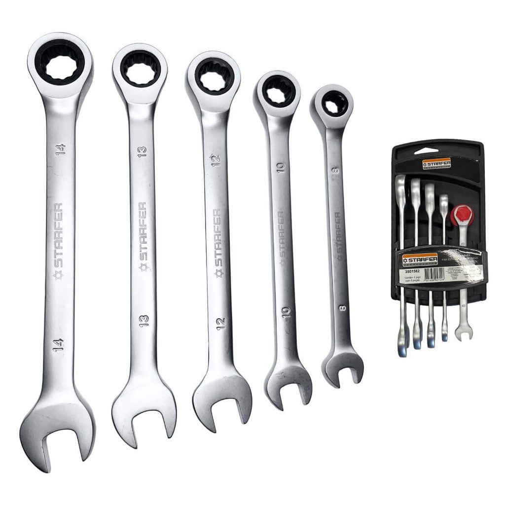 Jogo de Chaves Combinadas Catraca 8 a 14mm com 5 Peças Starfer