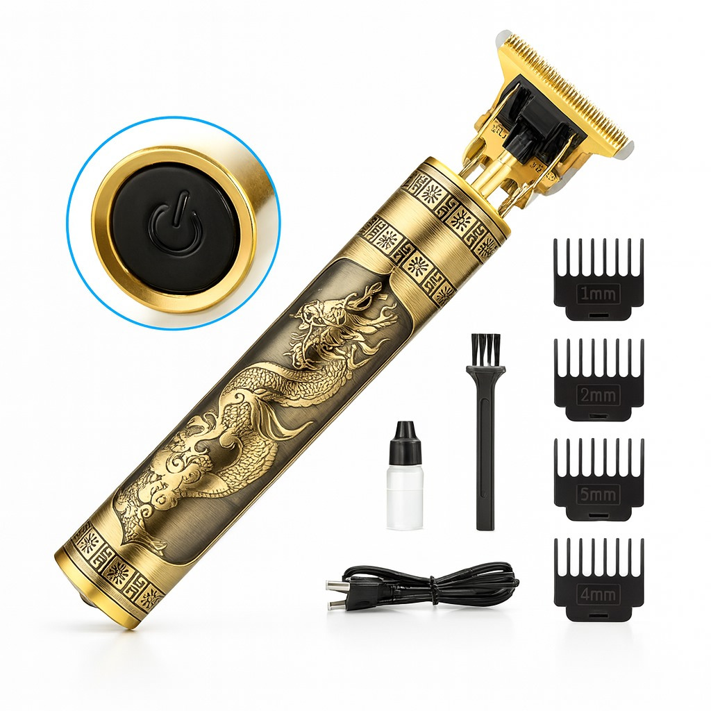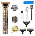 Máquina De Barbear e Cortar Cabelo Recarregável Profissional Dragão Acabamento Masculino T9 Vintage Sem Fio Bateria Duravel Modelo Dourado