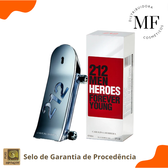 212 Men Heroes Carolina Herrera Eau de Toilette - Perfume Masculino - 50ml - 90ml - 150ml - ORIGINAL & C/SELO