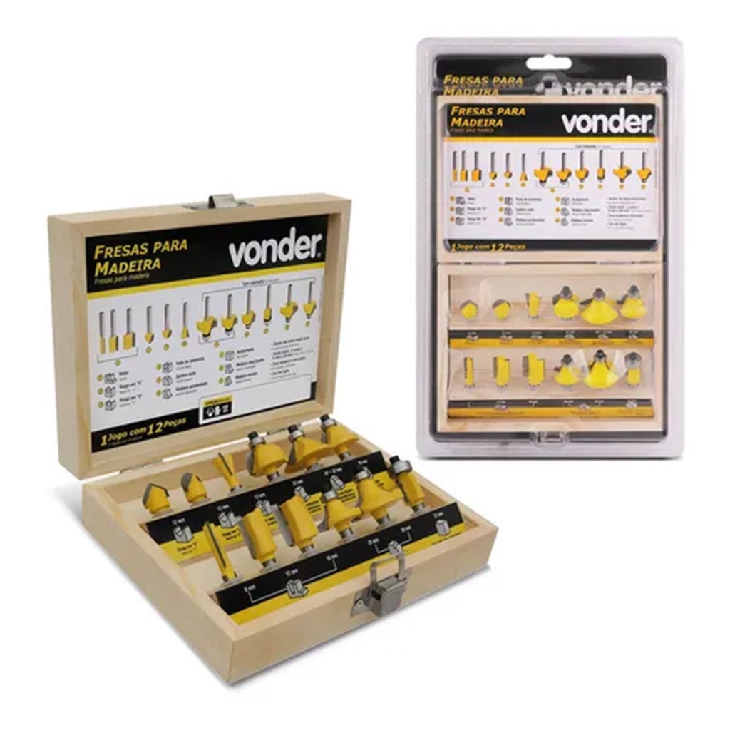 Kit Jogo Fresa Para Tupia 12 Pecas Com Estojo Madeira Vonder
