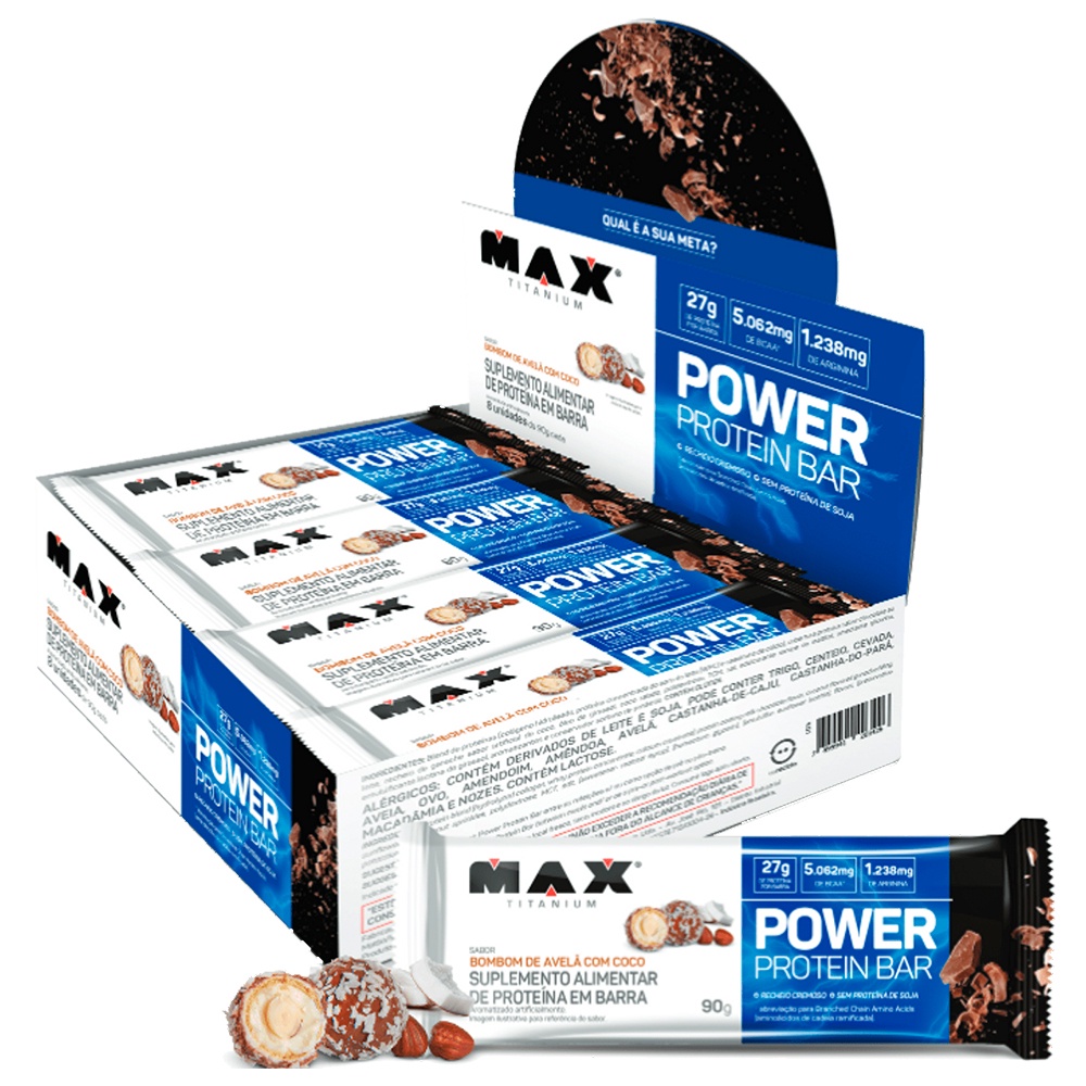 Max Titanium Power Protein Bar Display 8un de 90g - Barra de Proteína