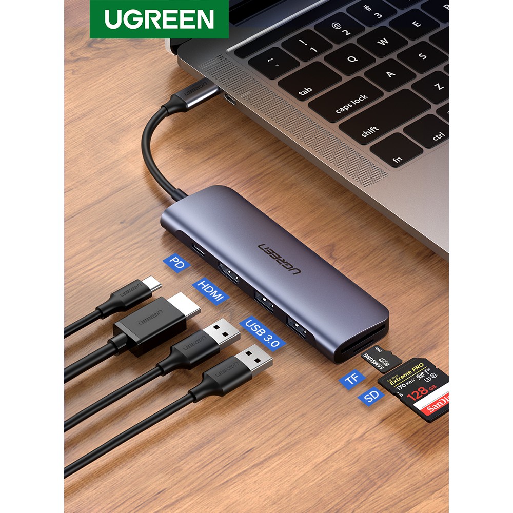 UGREEN USB C Hub 6 in 1 Type C to HDMI 4K, 2 USB 3.0 Ports, SD TF Card Reader, 100W PD Charging Adapter Dock Station