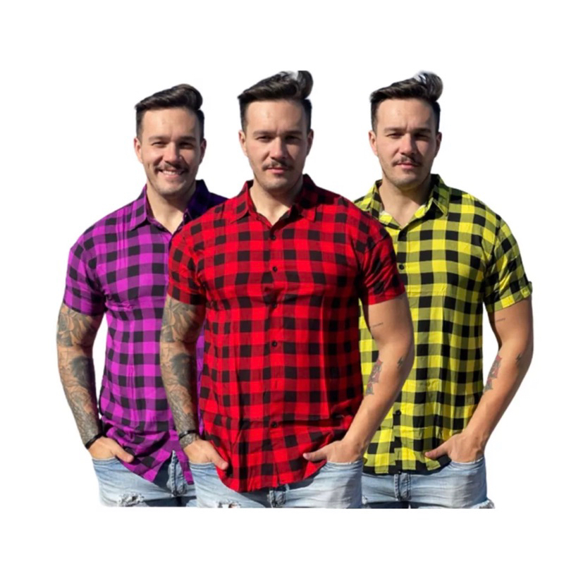 Camisa Xadrez Masculina Flanela Lenhador Manga Curta Slim