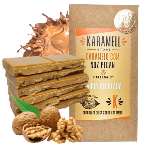 Chocolate Belga ao Leite 33% Noz Pecan com Caramelo - Linha Karamell