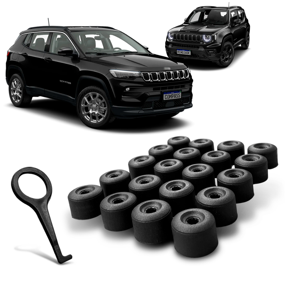 Kit 20 Capa Antifurto Parafuso 17mm Roda + Chaveta Compass Renegade Resistente