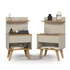 KIT 2 Mesas De Cabeceira Modelo Sleep Com Gaveta Pés Retro Amadeirado Cor Off Nature