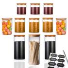 Kit 11 Potes de Vidro com Tampa de Bambu Herméticos com Adesivos e Canetinha