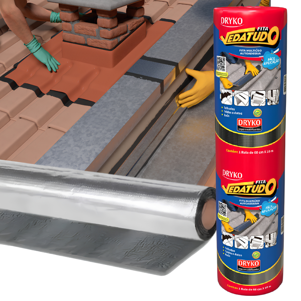 Fita manta asfáltica auto adesiva aluminizada multiuso 10 cm x 10 m - VEDATUDO - Dryko