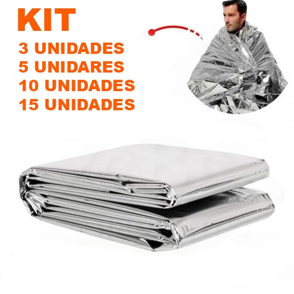 KIT Cobertor Manta Térmica Aluminizado 2,10 x 1,40m Para Resgate, Emergência e Camping - 3X, 5X, 10X, 15X