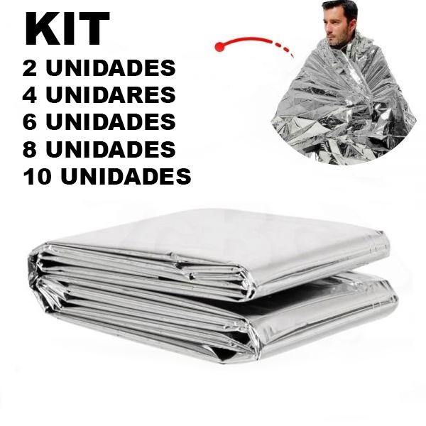 Cobertor Manta Térmica Aluminizado 2,10 x 1,40m Para Resgate e Camping - KIT com 2 UN, 4 UN, 6 UN, 8 UN, 10 UN