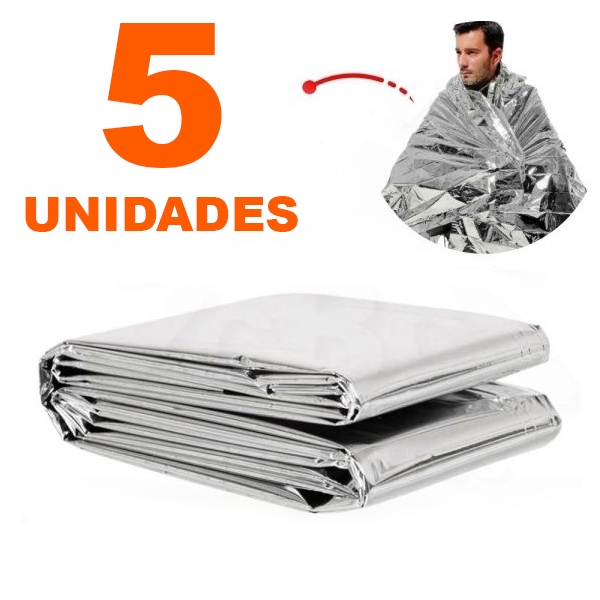 Kit com 5 Cobertor Manta Térmica Aluminizado 2,10 x 1,40m Para Resgate, Emergência e Camping
