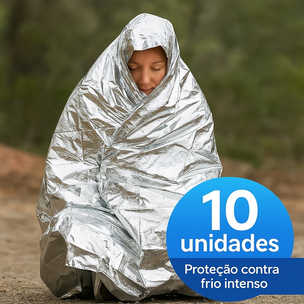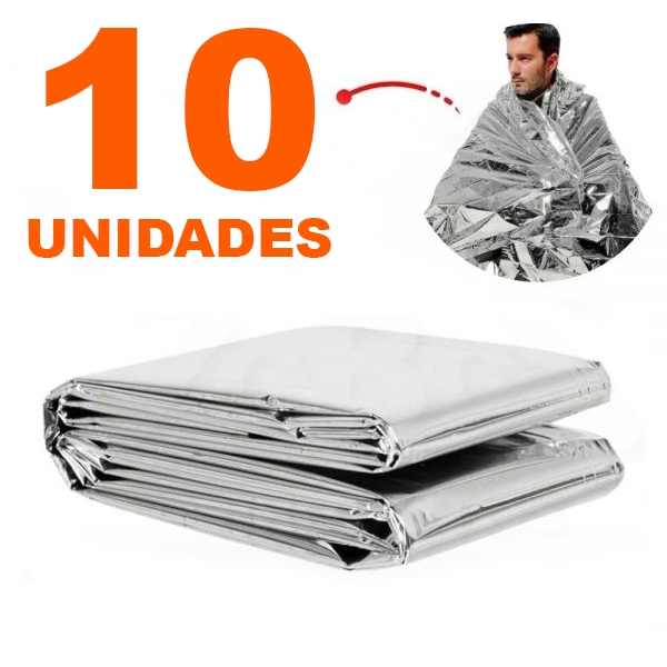 Kit 10 Cobertor Manta Térmica Aluminizado Isolante Emergência Resgate Acampamento Camping Hipotermia