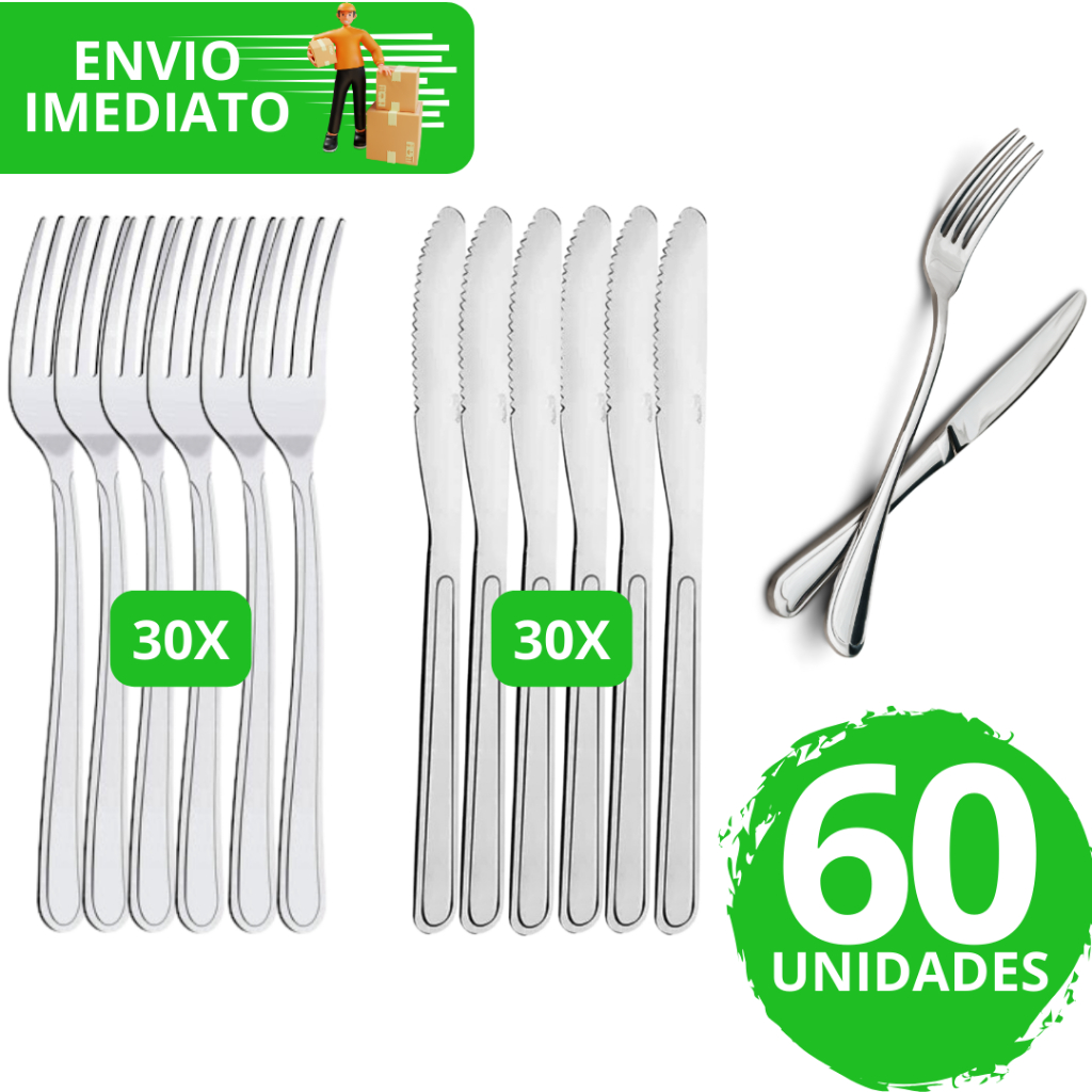 Kit 60 Talheres Garfos e Facas 100% Em Aço Inox Premium Alta Qualidade Para Restaurantes