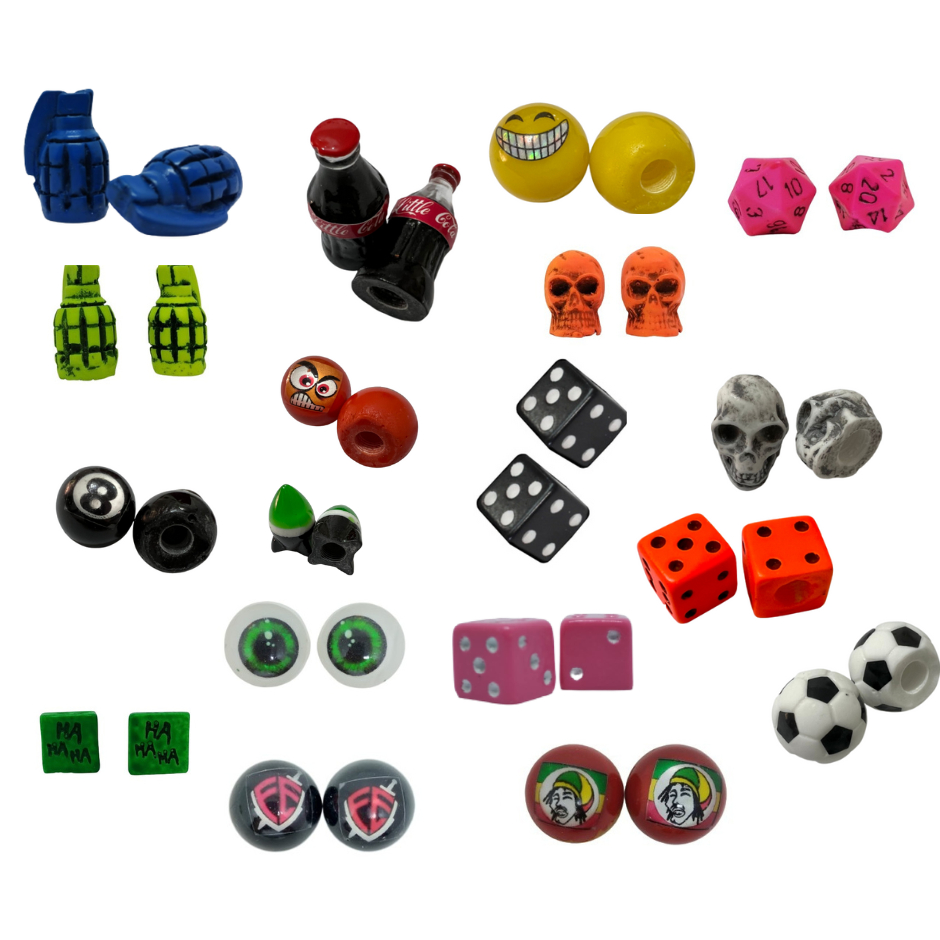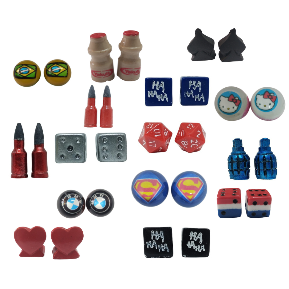 Par Tampa Ventil Válvula Pino Bico capa De Pneu Para Bike Moto Carro tuning, Cromados, Personagens