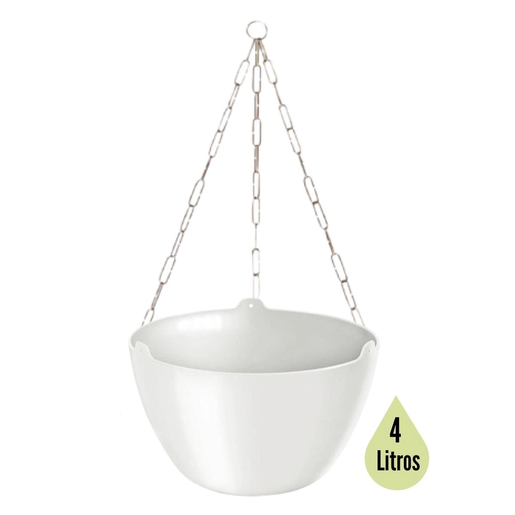 Kit Vaso Cuia Cachepo Elegance Suspenso 01 Branco Cachepot Decorativo Para Planta e Samambaia + Corrente 44 Cm - Nutriplan - Promoção!
