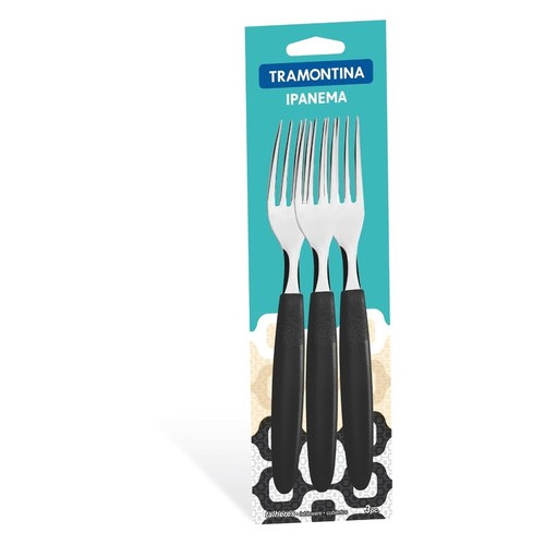 Conjunto de Garfos de Mesa Tramontina Ipanema com Lâminas em Aço Inox e Cabos de Polipropileno Preto 3 Peças 23362300