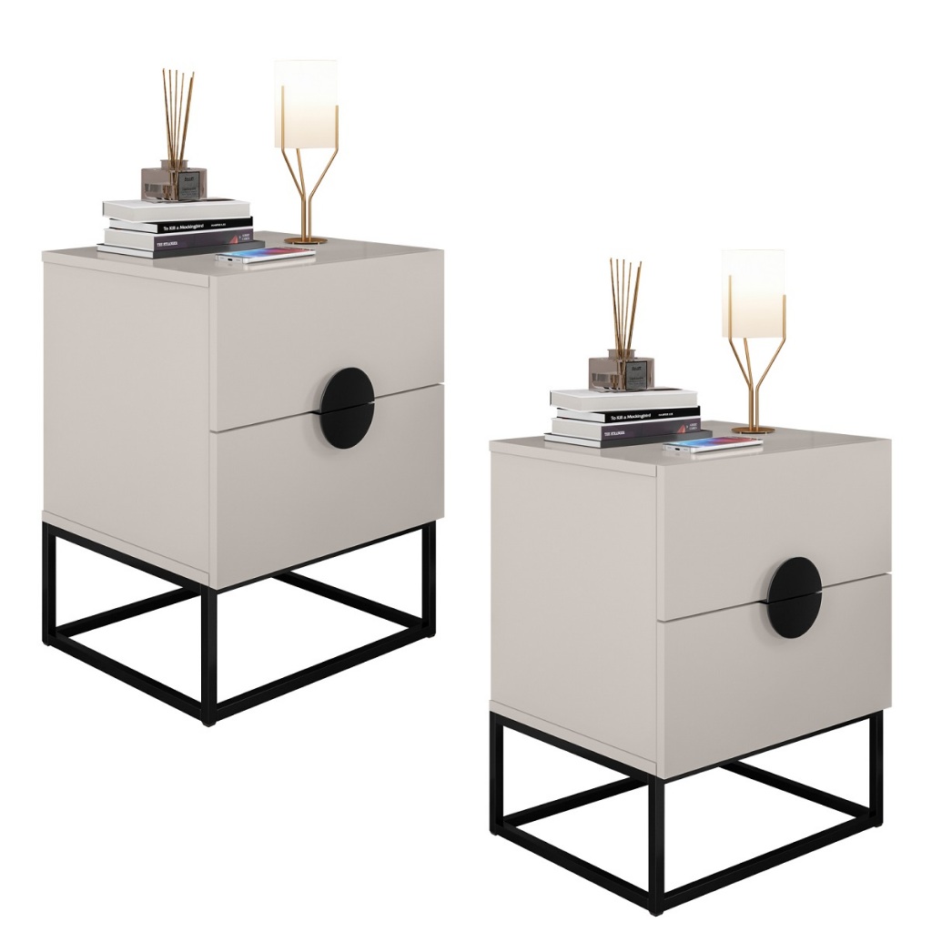 Kit 2 Mesas De Cabeceira Moderno Estilo Industrial Com 2 Gavetas Puxador Meia Lua - LH Móveis