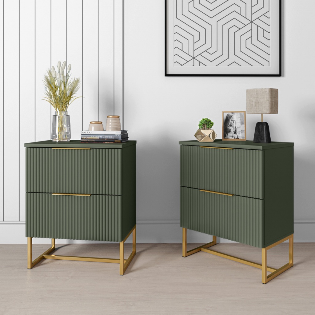 Kit 2 Mesas De Cabeceira Lumia Ripado Estilo Industrial Com 2 Gavetas - LH Móveis