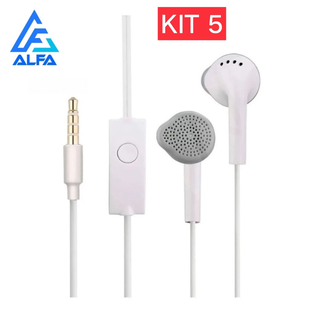 KIT 5 UNIDADES Fone de Ouvido Colorido Aleatório COM FIO e SEM MICROFONE Entrada de 3.5MM