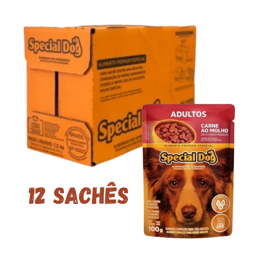 12 unidades Ração úmida Sache Premium Special Dog sabor carne para cães cachorros original caixa lacrada