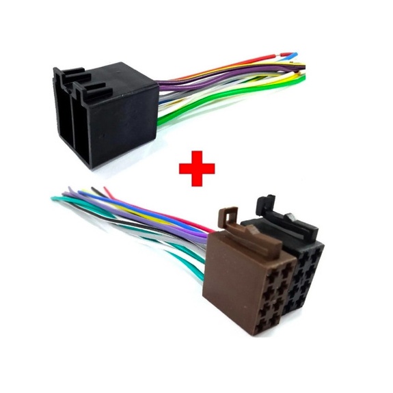 Kit Chicote Conector Macho e Femea 16 Vias Para Rádio Som Automotivo Universal