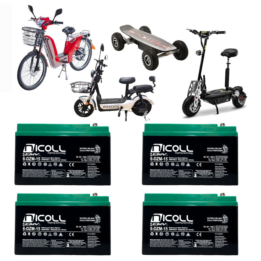 KIT 4 BATERIAS NICOLL 12V 15AH CICLO PROFUNDO BICICLETA BIKE ELETRICA ORIGINAL