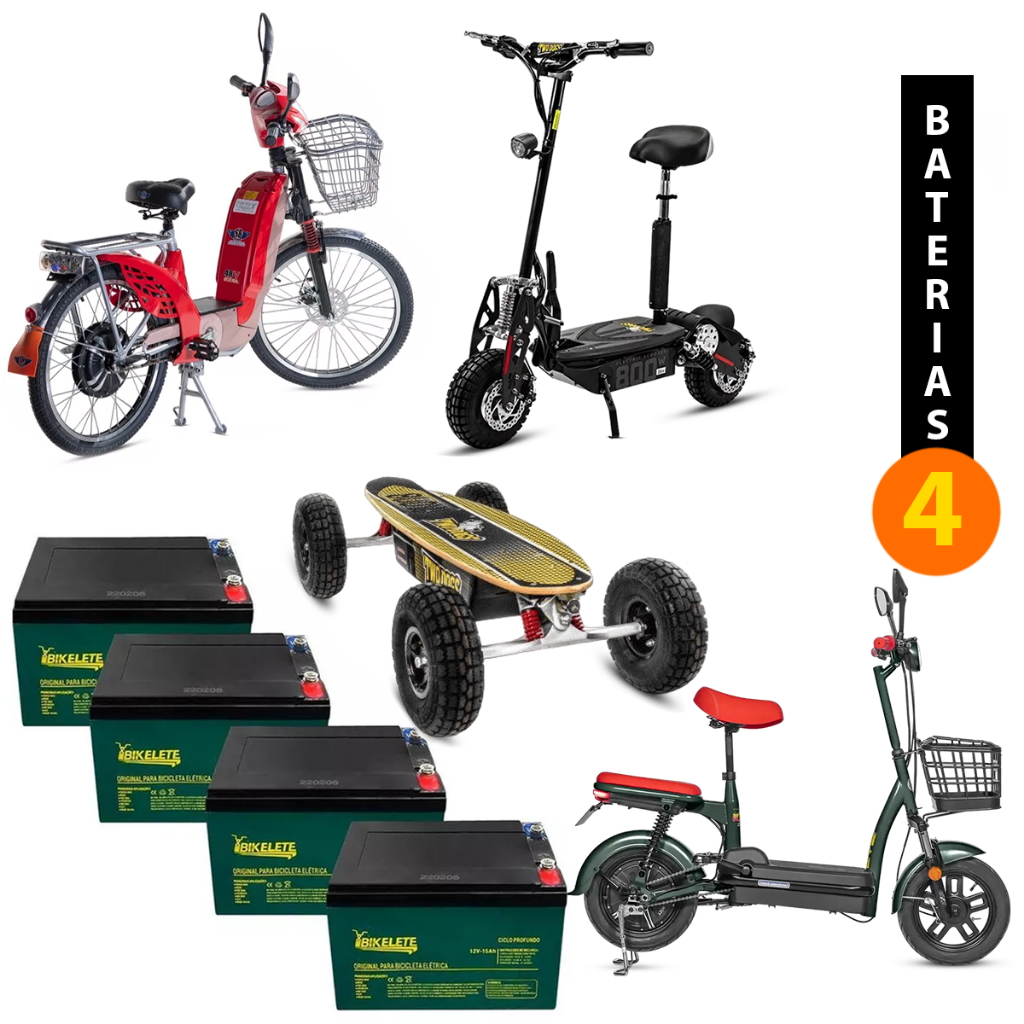 KIT 4 BATERIAS 12V 15AH CICLO PROFUNDO BICICLETA BIKE ELETRICA ORIGINAL BIKELETE