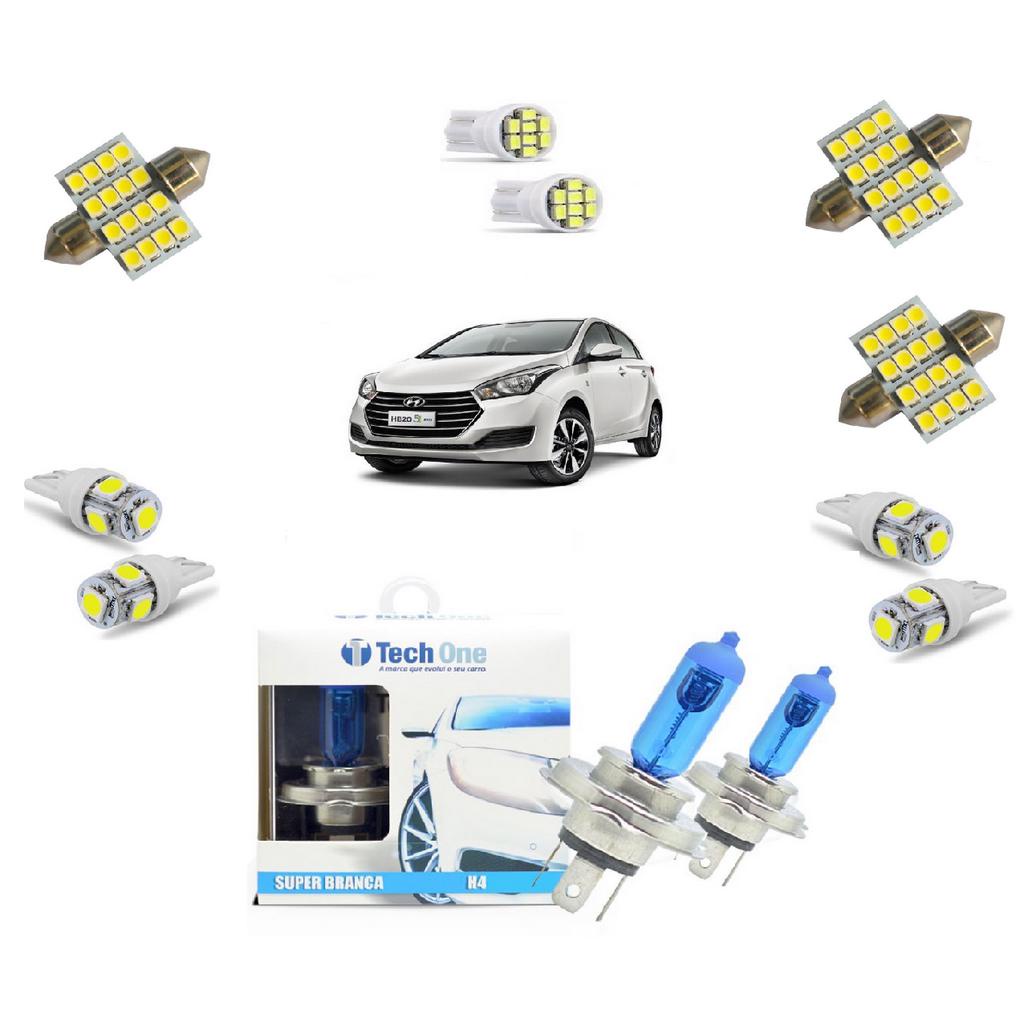 Kit Lampada Super Branca Farol + Milha H4 E H8 Hyundai Hb20 - Techone